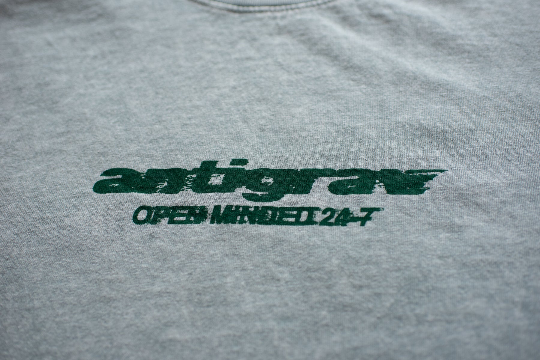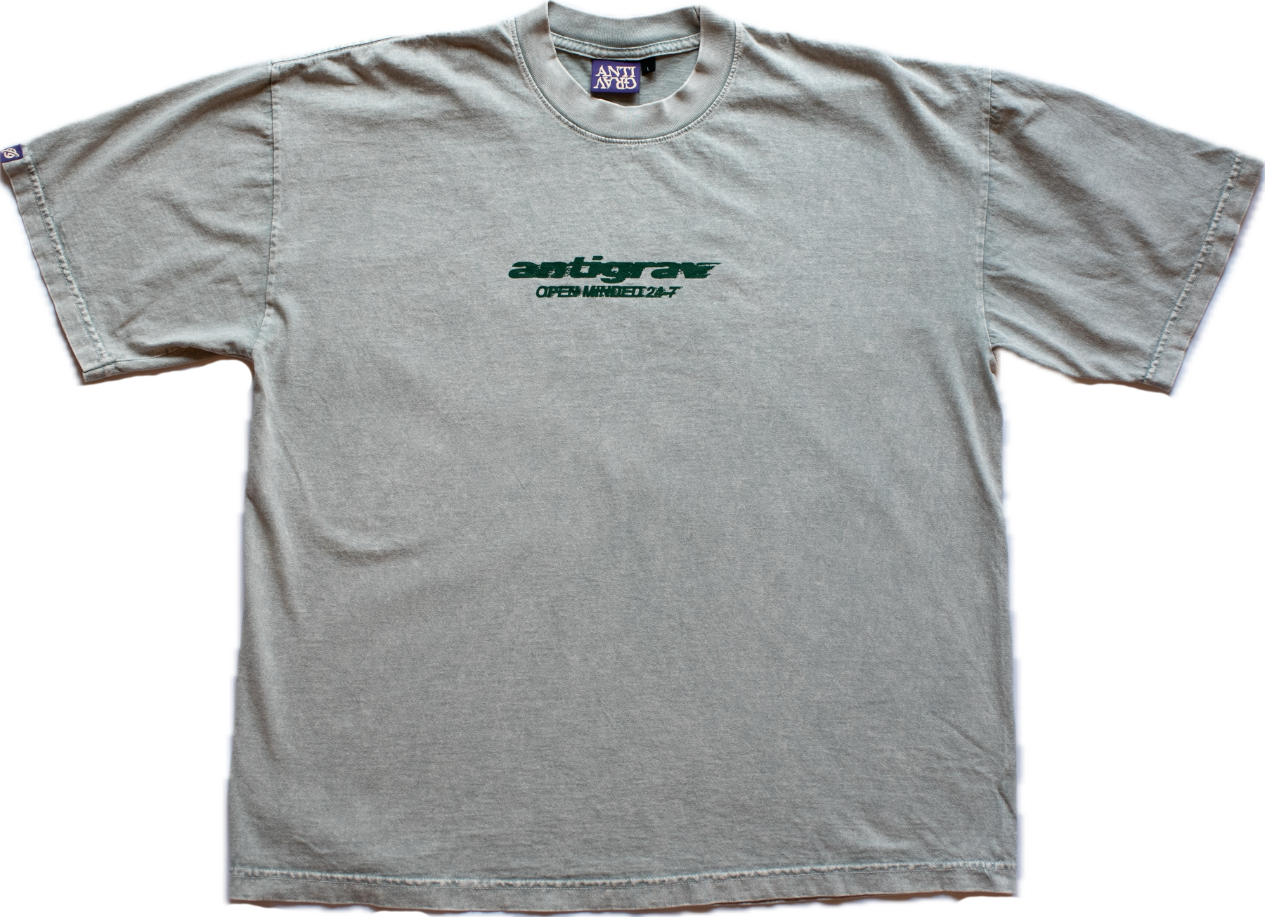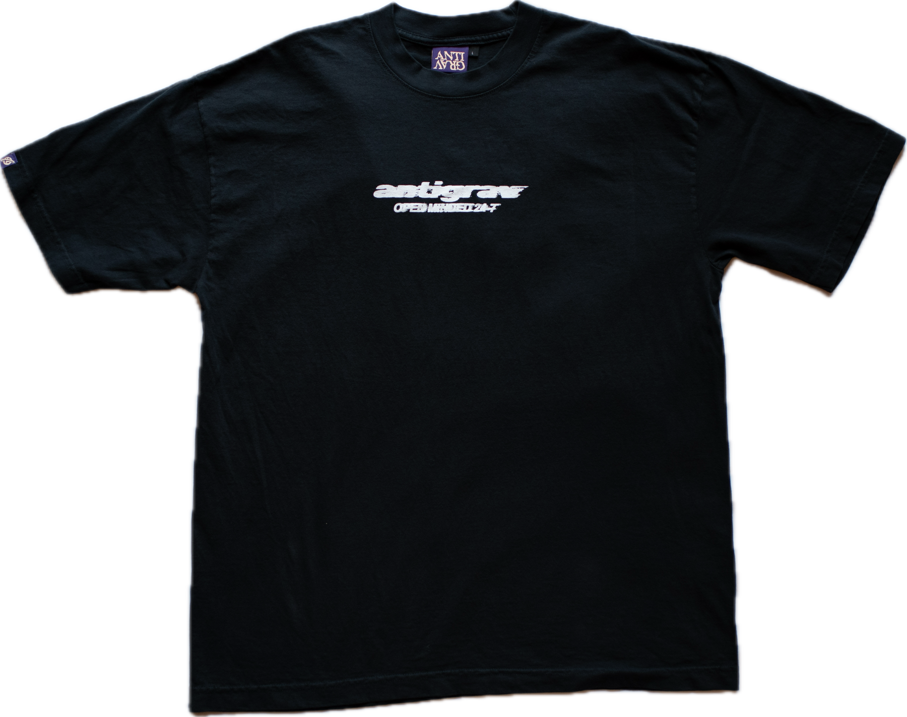 Always open minded. Front and back print, custom tag on sleeve or hem.